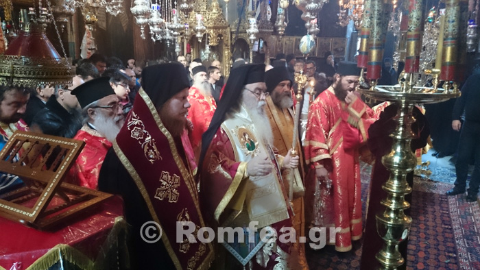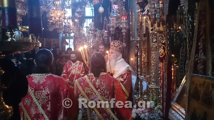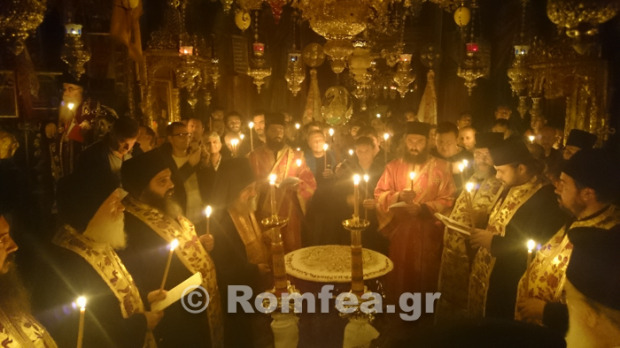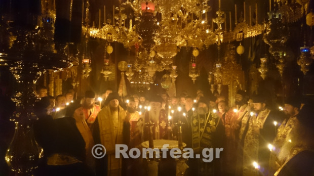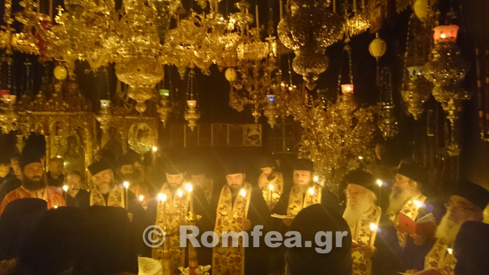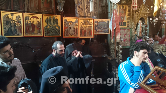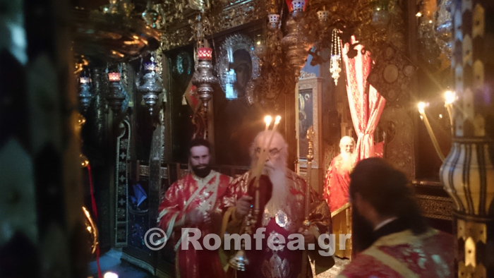Εχθές το βράδυ, τελέσθηκε η Ακολουθία της Παννυχίδος, την οποία τέλεσε και πάλι ο Μητροπολίτης Καστορίας και ακολούθησε στο συνοδικό της Ιεράς Μονής κέρασμα και συζήτηση, αναλύοντας ο Σεβασμιώτατος κ. Σεραφείμ, πνευματικές απορίες των προσκυνητών.