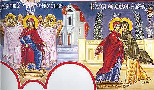 Το προσταχθέν μυστικώς λαβών εν γνώσει, εν τη σκηνή του Ιωσήφ σπουδή επέστη, ο ασώματος λέγων τη Απειρογάμω· ο κλίνας εν καταβάσει τους ουρανούς, χωρεῑται αναλλοιώτως όλος εν σοι· Ον και βλέπων εν μήτρα σου, λαβόντα δούλου μορφήν, εξίσταμαι κραυγάζων σοι· Χαίρε Νύμφη ανύμφευτε.