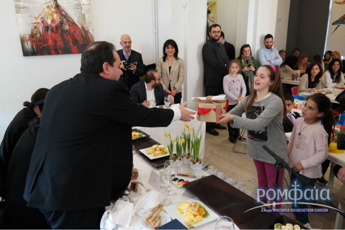 Επίσκεψη στο Κέντρο Δημιουργικής Απασχολησης Παιδιού «Δημήτρειο» του Φιλανθρωπικού Οργανισμού «Αποστολή» της Ιεράς Αρχιεπισκοπής Αθηνών πραγματοποίησε ο καθηγούμενος την Ιεράς Μεγίστης Μονής Βατοπαιδίου, Πανοσιολογιώτατος Γέρων Εφραίμ, ενόψει του εορτασμού των παθών του Κυρίου και εν αναμονή της Αγίας Αναστάσεώς Του