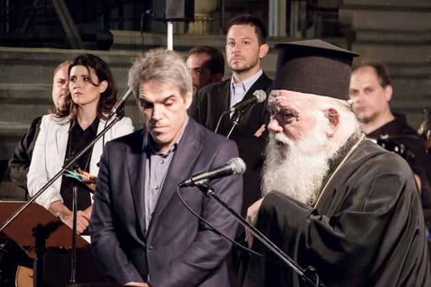 Παρουσία του Αρχιεπισκόπου Αθηνών και πάσης Ελλάδος κ. Ιερωνύμου πραγματοποιήθηκε η πρώτη σύμπραξη των μουσικών συνόλων της Ιεράς Αρχιεπισκοπής Αθηνών και του Δήμου Αθηναίων. Η συναυλία "Ελλήνων Ήχοι" πραγματοποιήθηκε κατόπιν συνεργασίας του Οργανισμού Πολιτισμού, Αθλητισμού και Νεολαίας του Δήμου Αθηναίων και της Ιεράς Αρχιεπισκοπής Αθηνών στο προαύλιο του Ιερού Μητροπολιτικού Ναού Αθηνών στην Πλατεία Μητροπόλεως. Ο Αρχιεπίσκοπος μετά το τέλος της εκδήλωσης ευχαρίστησε όλους τους συντελεστές της συναυλίας λέγοντας πως μας έδωσαν ένα μήνυμα αισιοδοξίας. "Έχουμε πείρα από δοκιμασίες και κρίσεις", είπε ο Αρχιεπίσκοπος, "αλλά έχουμε μάθει τον τρόπο να τις ξεπερνάμε. Και σε αυτήν την ατμόσφαιρα δημιουργείται ένα κλίμα αισιοδοξίας για το αύριο". Ο Αρχιεπίσκοπος αναφέρθηκε στα μουσικά σύνολα της συναυλίας και χαρακτήρισε την αποψινή βραδιά ένα μουσικό ταξίδι. "Ταξιδέψαμε μουσικά από ...