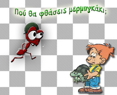 Για μαθητές της Β΄ τάξης Διάβασε τις οδηγίες παρακάτω, παρακολούθησε το παράδειγμα και μετά κάνε κλικ στο ζωάκι που νομίζεις ότι θα καταλήξει το μερμήγκάκι, αν ακολουθήσει σωστά τις οδηγίες. Μην επιχειρήσεις να κάνεις κλικ σ΄ όλα τα ζωάκια, για να πετύχεις τη σωστή απάντηση στην τύχη. Έτσι θα χάσεις όλη τη μαγεία που έχουν τα μαθηματικά.