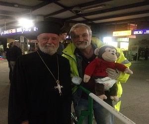 Το Σάββατο 5 Σεπτεμβρίου, ο πρωτοπρεσβύτερος Απόστολος Μαλαμούσης, αρχιερατικός επίτροπος Βαυαρίας της Ιεράς Μητροπόλεως Γερμανίας, μετέβη στον κεντρικό σιδηροδρομικό σταθμό του Μονάχου και έλαβε μέρος στην υποδοχή των προσφύγων που κατά χιλιάδες κατἐφθαναν με τα τρένα στο Μόναχο. Από τις 10 μ.μ. μέχρι τις 2 π.μ. παρέμεινε ο π. Απόστολος στον σταθμό καλοσωρίζοντας τους κάθε λογής, μέχρις εσχάτων, ταλαιπωρημένους πρόσφυγες. Με την άφιξη των συρμών οι πρόσφυγες οδηγούντο από την αστυνομία απ΄ευθείας σε σκηνές που είχαν στηθεί στο χώρο του σταθμού για μια πρώτη ιατρική εξέταση. Χιλιάδες εθελόντριες και εθελοντές από διάφορους βαυαρικούς φορείς και συλλόγους προσέφεραν τις πρώτες βοήθειες σε τρόφιμα και ποτά. Ακολούθως επεβιβάζοντο οι πρόσφυγες σε λεωφορεία για να μεταφερθούν, συνοδεία αστυνομίας σε μονιμότερους καταυλισμούς που έστησαν επί ...