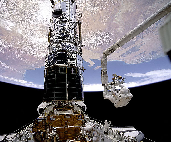 Στιγμιότυπο από την πρώτη αποστολή εργασιών συντήρησης στο Hubble, το 1993, με τον εικονιζόμενο αστροναύτη F. Story Musgrave, να ετοιμάζεται να ανέβει στην κορυφή του τηλεσκοπίου με τη βοήθεια του ρομποτικού βραχίονα του διαστημικού λεωφορείου Endeavor και τον αστροναύτη Jeffrey Hoffman να υποστηρίζει την προσπάθεια μέσα από το διαστημόπλιο (Πηγή: http://hubblesite.org/) Στις 24 Απριλίου 1990, ξεκίνησε μία αποστολή η οποία θα άλλαζε για πάντα την εικόνα μας για το Σύμπαν! Την ημέρα εκείνη τέθηκε σε τροχιά το σπουδαιότερο ίσως από τα τροχιακά μας αστεροσκοπεία: το Διαστημικό Τηλεσκόπιο Hubble. Mε αφορμή τα 25α γενέθλια του Hubble, το Νέο Ψηφιακό Πλανητάριο του Ιδρύματος Ευγενίδου προσκαλεί το κοινό τη Δευτέρα, 21 Σεπτεμβρίου 2015, στην προβολή της επετειακής παράστασης «Το Σύμπαν του Hubble». Η παράσταση «Το ...