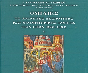 Ένα ιδιαίτερα ψυχωφέλιμο βιβλίο κυκλοφόρησε πρόσφατα από την Ι.Μ. Οσίου Γρηγορίου Αγ. Όρους. Περιλαμβάνει τις ομιλίες του μακαριστού Γέροντα Γεωργίου (Καψάνη), Προηγουμένου της Μονής, σε Δεσποτικές και Θεομητορικές εορτές, οι οποίες συντέθηκαν μεταξύ των ετών 1981-1991. Το έργο τιμάται με 6€ για μαλακό εξώφυλλο και 8€ για σκληρό εξώφυλλο, ενώ υπάρχει έκπτωση για χονδρική για βιβλιοπωλεία 30% και για Ιερές Μονές 20%. Το βιβλίο διατίθεται κεντρικά από την Ιερά Μονή, στη διεύθυνση: ΙΕΡΑ ΜΟΝΗ ΟΣΙΟΥ ΓΡΗΓΟΡΙΟΥ, 63087, ΑΓΙΟΝ ΟΡΟΣ. τηλ. 6944508555, 6977216239, 6981635024. Για το πνευματικό περιεχόμενο της έκδοσης είναι αρκούντως εύγλωττος ο Πρόλογός της, τον οποίο παραθέτουμε αυτούσιο: Η πνευματική κληρονομιά και παρακαταθήκη που άφησε στην Ιερά Μονή μας ο μακαριστός Καθηγούμενος και Γέροντάς μας, Αρχιμανδρίτης Γεώργιος, είναι μεγάλη και πολύτιμη. Ένα μέρος αυτής της κληρονομιάς είναι το ομιλητικό ...