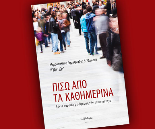 Είναι σπάνιο στους καιρούς μας να διαβάζει η να ακούει κανείς εκκλησιαστικό λόγο επίκαιρο (λ.χ. με αναφορές στην σύγχρονη εκπαίδευση, στην επικείμενη Αγία και Μεγάλη Σύνοδο, στους μετανάστες, στον ρατσισμό κ.α.) ή τουλάχιστον λόγο επικαιροποιημένο (λ.χ. το νόημα του Πάσχα στον καιρό της κρίσης, τον φαρισαϊσμό των συγχρόνων χριστιανών κ.α.). Εξαίρεση σ’ αυτόν τον ‘’κανόνα’’ αποτελεί το βιβλίο που παρουσιάζω σήμερα. Μητρ. Δημητριάδος και Αλμυρού Ιγνατίου "Πίσω από τα καθημερινά. Λόγια καρδιάς με αφορμή την επικαιρότητα" Αθήνα 2015, σελ. 331 Εκδόσεις: Αρχονταρίκι Πρόκειται για μία συλλογή άρθρων διαρθρωμένων σε εννέα θεματικές ενότητες: α) «Στο ξεκίνημα», β) «Θεός αγάπης, Θεός ελπίδας», γ) «Από τον Σταυρό στην Ανάσταση» δ) «Το μεγαλείο της Εκκλησίας» ε) «Εκκλησία, η μέλλουσα πόλις», στ) «Θρησκευτικός φανατισμός και συμφιλίωση», ζ) «Δι’ ευχών» και η) «Σαν όνειρο», του Σεβ. Μητρ. Δημ. & ...