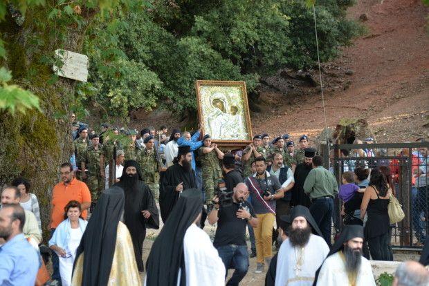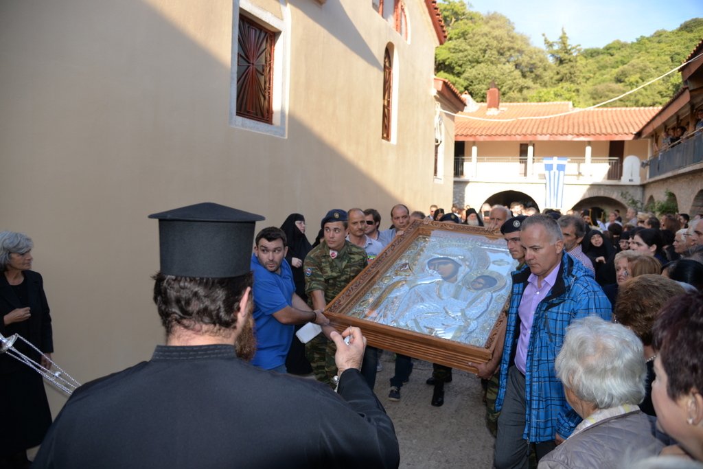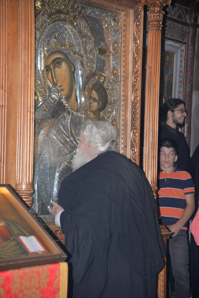 Την εικόνα της Παναγίας μας θα θέλαμε να προσφέρουμε και στην συνοδεία σας εις ανάμνηση αγαθή της επισκέψεώς τους στην Ιερά Μονή μας και μάλιστα στην χαρμόσυνη αυτή μέρα.