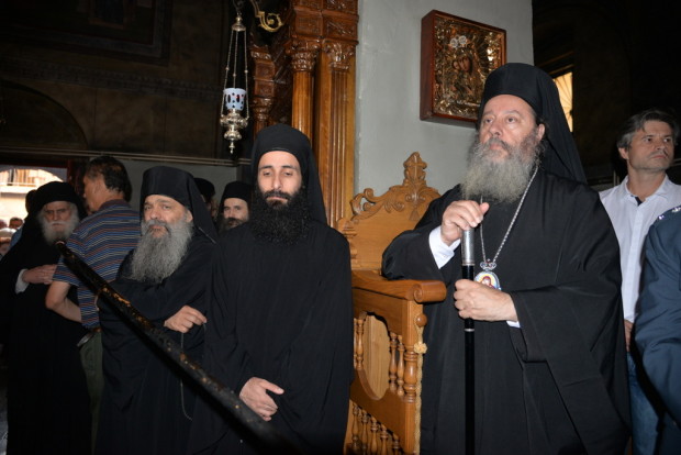 Νωρίς σήμερα το πρωί, στις 5 π.μ. τελέστηκε Όρθρος και πανηγυρική Θεία λειτουργία όπου προεξήρχε ο Ηγούμενος της Μονής Βατοπαιδίου Εφραίμ, ο οποίος θα μιλήσει σήμερα στις 7 το απόγευμα,στην αίθουσα συνεδρίων του ξενοδοχείου Patras Palace, στην Όθωνος Αμαλίας 15 και Ζαίμη με κεντρικό θέμα «Η παρουσία του Αγίου όρους σήμερα».