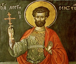 Ο Άγιος του Γολγοθά, Λογγίνος ο Εκατόνταρχος Στα ιερά μας Ευαγγέλια ο Ρωμαίος στρατιώτης που λόγχευσε την ακήρατη πλευρά του Εσταυρωμένου μας Ιησού είχε το αξίωμα του Κεντυρίωνα - Εκατοντάρχου. Το όνομά του Λογγίνος αναφέρεται στο απόκρυφο Ευαγγέλιο του Νικοδήμου και πιθανώς να προέρχεται από την ελληνική λέξη «λόγχη». Ο Άγιος αυτός του Γολγοθά, ιουδαϊκής καταγωγής, γεννήθηκε στην αγιοτόκο Καππαδοκία και υπηρετούσε στο ρωμαϊκό στρατό υπό τις διαταγές του Ποντίου Πιλάτου. Ήταν επικεφαλής της ομάδος που επιτηρούσε τα άχραντα Πάθη του Κυρίου μας, τους εμπτυσμούς, τους κολαφισμούς, το ακάνθινο στεφάνι και τη φρικτή σταύρωσή Του. Όταν βρέθηκε στο φρικτό Γολγοθά ο Άγιος Λογγίνος και παρακολούθησε το θέατρο του παραλόγου που ήταν στημένο από τους φωνάζοντες «το αίμα αυτού εφ’ ημάς και επί τα ...