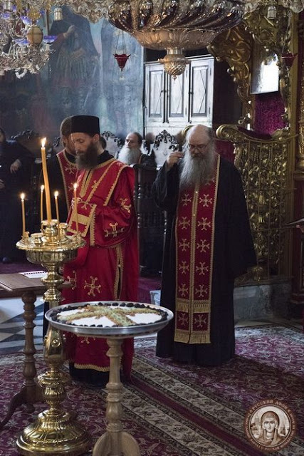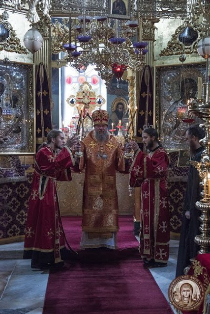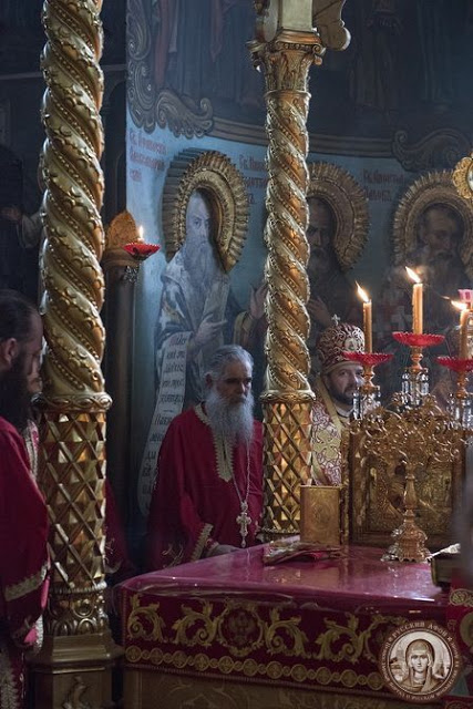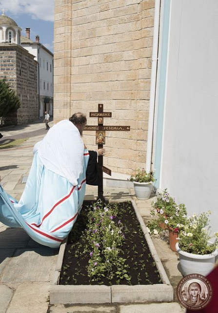 Μετά την Πανηγυρική Θεία Λειτουργία ο Μητροπολίτης Αλέξανδρος διάβασε μήνυμα του Πατριάρχη Μόσχας κ.κ. Κύριλλου και αναφέρθηκε στον πρόσφατα κοιμηθέντα Ηγούμενο της Μονής Γέροντα Ιερεμία, στον τάφο του οποίου εψάλη τρισάγιο.