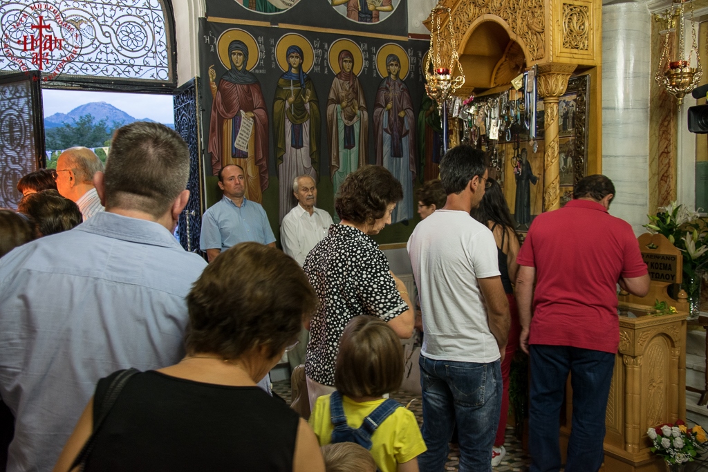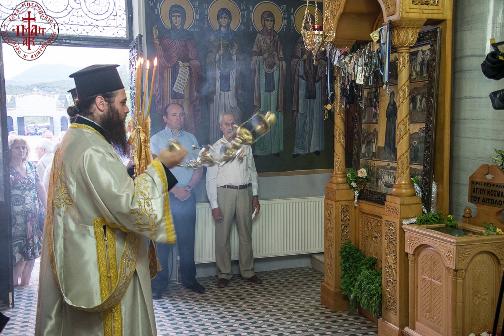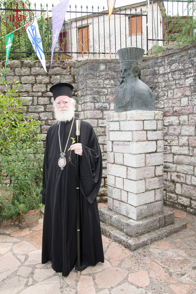 «Κι όμως, ήρθατε με πολύ χαρά» τόνισε ο Σεβασμιώτατος κ. Κοσμάς, «για να προστήτε των λατρευτικών εκδηλώσεων επί τη μνήμη του μεγάλου προστάτου μας και Πολιούχου Αγίου Κοσμά του Αιτωλού. Ήρθατε να τελέσετε το μυστήριο της Θ. Ευχαριστίας, να μας ευλογήσετε, και το απόγευμα κατά την περιφορά της εικόνος του Αγίου μας, να μας προσφέρετε λόγον οικοδομής, λόγο Αγίου Κοσμά.