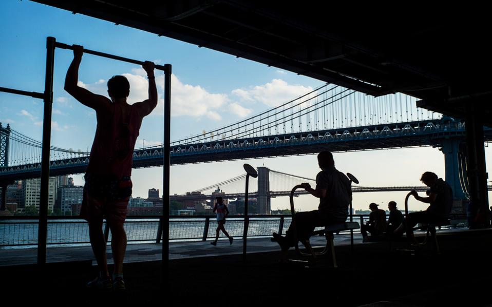 Κάτοικοι της Νέας Υόρκης ασκούνται ανατολικά του ποταμού Χάντσον.