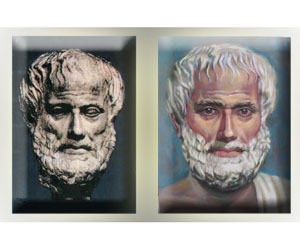 Μέσω των πολιτικών, κοινωνικών και πολιτισμικών διεργασιών που συντελέστηκαν στην Ελλάδα από τον 5ο έως τον 2ο αι. π. Χ., μεταξύ των άλλων υψηλών επιτευγμάτων της Τέχνης, η γλυπτική μεγαλουργεί. Διευρύνει σταδιακά τους ορίζοντες της έκφρασης της ανθρώπινης προσωπικότητας και της προεκβολής ποικίλων εκφάνσεων της σκέψης και της ιδιοσυγκρασίας. Ιδιαίτερα στις φυσιογνωμίες των αγαλμάτων φιλοσόφων, ουδέποτε ξεπεράστηκαν από την μετέπειτα γλυπτική η ποιότητα, η ευαισθησία, η ποικιλία και η εκφραστική δύναμη της απόδοσης του πνευματικού, του ηθικού ή του ψυχικού τους κόσμου. Εικ. 1 Μαρμάρινο αντίγραφο της κεφαλής ανδριάντα του Αριστοτέλη. Kunsthistorisches Museum, Βιέννη Ο χάλκινος ανδριάντας του Αριστοτέλη είχε στηθεί στη Σχολή του, την Περιπατητική Σχολή. Δεν γνωρίζουμε την όψη του αγάλματος. Ο ανδριάντας χάθηκε, εξ αιτίας της επαναχύτευσης του ...