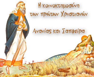 Όλοι οι πιστοί στον Χριστό είχαν μια καρδιά και μια ψυχή. Όλα ήταν κοινά και κανείς δεν ξεχώριζε την περιουσία του μόνο για τον εαυτό του. Οι Απόστολοι κήρυτταν καθημερινά τον λόγο και την Ανάσταση του Χριστού κι ο Θεός χάριζε σ' όλους πλούσιες τις δωρεές Του. Αν κάποιος είχε κτήματα ή χρήματα πολλά τα διέθετε για τις ανάγκες όλων των αδελφών κι έτσι κανείς ανάμεσά τους δεν στερούνταν τα απαραίτητα. Πρώτος ο Βαρνάβας από την Κύπρο – το όνομά του σημαίνει «άνθρωπος της παρηγοριάς»- πούλησε το χωράφι του κι όσα χρήματα πήρε τα πρόσφερε στους Αποστόλους για τις ανάγκες των αδελφών. Μετά την πράξη αυτή του Βαρνάβα και κάποιος άλλος που τον έλεγαν Ανανία μαζί με τη γυναίκα του, τη ...