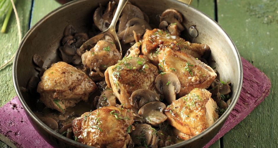 Συστατικά 3 φιλέτα στήθος κοτόπουλο με δέρμα, κομμένα στα 2 2 κ.σ. ελαιόλαδο 50 γρ. βούτυρο 1 κρεμμύδι ψιλοκομμένο 500 γρ....