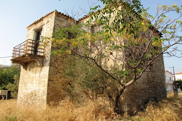 Εικόνα 11: Σχεδιαγράμματα της κάτοψης και των όψεων του πυργόσπιτου του Κιαμήλ Μπέη. (Αποτύπωση – σχεδίαση: Μαγδαληνή Δημητροπούλου, αρχιτέκτων – μηχανικός). Στην παρούσα μορφή, το διαλαμβανόμενο Οθωμανικό πυργόσπιτο παρουσιάζει ορισμένες διαφορές από την αρχική κατασκευή, καθώς δέχτηκε αρκετές μεταγενέστερες τροποποιητικές επεμβάσεις, αλλά σε γενικές γραμμές ακολουθεί το πρωτότυπο αρχιτεκτονικό σχέδιο. Πρόκειται για ένα διώροφο πέτρινο κτίριο με κάτοψη σχήματος πεπλατυσμένου «Τ», το οποίο προσδίδεται από ένα προεξέχον ορθογώνιο τμήμα στο μέσο της βορειοανατολικής πλευράς, που λειτουργούσε ως πυργοειδής προμαχώνας. Το ύψος του φτάνει τα 8 μέτρα και το εμβαδόν του κάθε ορόφου είναι 82 τετραγωνικά μέτρα. Το μεγαλύτερο εγκάρσιο σκέλος του καλύπτεται με τετράριχτη στέγη και ο στενότερος πυργοειδής προμαχώνας με τρίριχτη, ενώ τα πατώματα και η οροφή είναι ξύλινα. ...