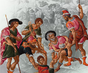 The wonder-working relics of the Priest Martyr Vlasios Arkananos and the five other monks who suffered with him are kept in the church of Saint Paraskevi in Palairo, Arkanania. On their feast day, 7 July, the relics are taken to the nearby village of Sklavaina, where services are held at the blood-stained site where the six saints were martyred. In fact, these services are held on the actual site of the long-destroyed monastery of the Entry of the Mother of God, where a newer church has since been built. On the spot where they were killed, other Romans (i. e. subjects of the Christian Eastern Roman Empire, or ‘Byzantium’) from the surrounding area also suffered because they refused to ‘bow ...