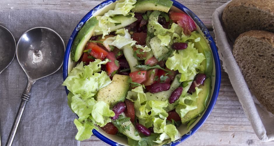 Συστατικά 2 μικρά αγγούρια χωρίς σπόρους ξεφλουδισμένα 2 καρδιές μαρουλιών, καθαρισμένες 3 ντομάτες, κομμένες στη μέση και χωρίς σπόρια 2...