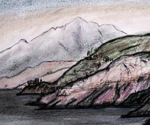 Περιβόλια που δίδετε καλές τροφές στους μοναχούς και σ’ όσους τους επισκέπτονται. Από ψηλά θαυμάζω την τάξη της δουλειάς των υποτακτικών που φτιάχνουν τα αυλάκια, τις γυροβολιές στις ρίζες των πλατάνων και των καστανιών. Πηγές που χαρίζουν μπόλικο νερό στα περιβόλια του ουρανού. Κατεβαίνοντας δίπλα στους φράχτες, στις πόρτες με τους σταυρούς που έκλειναν την περιουσία του θεού στη γη, θαύμαζα και απορούσα. Πλούσια αγαθά για το σώμα και τη ψυχή και οι προσκυνητές θα έχουν να δουν και να δοκιμάσουν στα μοναστήρια. Εκεί τα πρώτα θεμέλια χαμηλά που ζώνουν τα αθέατα, τις ρίζες τις πολύφερνες. Ο Άθωνας από τα ανατολικά Τα δάση γέρνουν στη θάλασσα, παίζουν και βρέχονται από το κύμα. Αλμύρα στάζουν οι πευκοβελόνες και οι ελιές γελούν στο ...