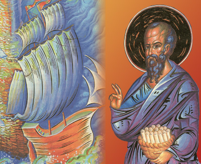 Πριν ακόμη αρχίσουν τους διωγμούς των χριστιανών οι ειδωλολάτρες Ρωμαίοι αυτοκράτορες, άρχισαν οι ίδιοι οι Εβραίοι να κυνηγούν και να θανατώνουν τους χριστιανούς. Κυρίως η οργή τους στρεφόταν εναντίον των Αποστόλων που δίδασκαν και βάπτιζαν με ζήλο τους πιστούς. Από τη μανία τους δε γλίτωσε κι ο Παύλος. Τους κακοφαίνονταν που από διώκτης έγινε κήρυκας του Χριστού. Θέλοντας να τον σκοτώσουν, τον οδήγησαν στους Ρωμαίους άρχοντες με διάφορες ανόητες κατηγορίες. Ο Παύλος, ως ρωμαίος πολίτης, ζήτησε να παρουσιαστεί στον αυτοκράτορα κι επειδή είχε αυτό το δικαίωμα, τον έβαλαν σ΄ ένα πλοίο μαζί με άλλους κρατούμενους και με φρουρά, για να πάνε στη Ρώμη. Φτάνοντας το καράβι στην Κρήτη, η κακοκαιρία, ο άνεμος και τα κύματα εμπόδιζαν το ταξίδι του. Ο Παύλος είπε ...