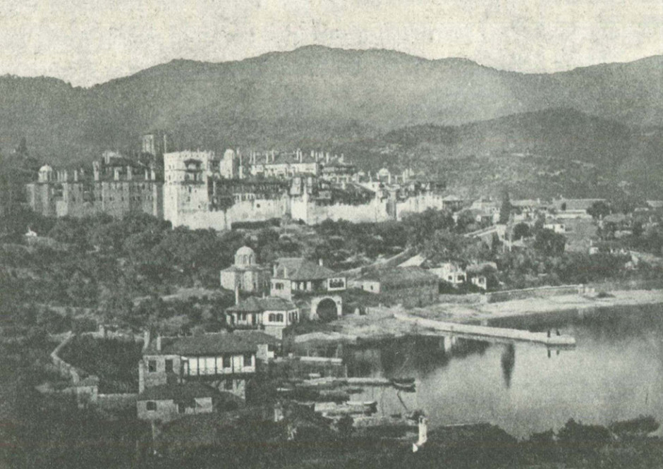Ιερά Μονή Βατοπαιδίου (φωτ. 1870) Γεννήθηκε, ο κατά κόσμον Γεώργιος Θεοδώρου, στο χωριό Σκουπιά της Αλώνης των Πριγκιποννήσων το 1862. Ήταν κατά σάρκα αδελφός του Γέροντος Αρκαδίου Βατοπεδινού († 1934) και θείος εξ αδελφής των μοναχών Παντελεήμονος και Νικοδήμου. Στη μονή Βατοπεδίου προσήλθε το έτος 1879. Εκάρη μοναχός το 1883. Ήταν απόφοιτος της Εκκλησιαστικής Σχολής της Οδησσού. Στο Άγιον Όρος ήλθε για προσκύνημα και για να συναντήσει τον συγχωριανό του Γέροντα Παΐσιο Βατοπεδινό, χωρίς να έχει σκοπό να μείνει στη μονή, αλλά να επιστρέψει στην Οδησσό και να έχει εκκλησιαστική σταδιοδρομία στον κόσμο. Η Παναγία όμως τον βάστηξε μόνιμα στο Περιβόλι της. Το 1884 χειροτονήθηκε διάκονος και το 1898 πρεσβύτερος και προχειρίσθηκε, προηγούμενος και προϊστάμενος της Γεροντικής Συνάξεως. Σύμφωνα με μαρτυρίες ...