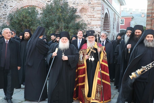 Ο Μακαριώτατος Αρχιεπίσκοπος Πεκίου, Μητροπολίτης Βελιγραδίου και Καρλοβικίου και Πατριάρχης των Σέρβων κ. Ειρηναίος έφτασε στη Μονή Βατοπαιδίου στις 15:00...