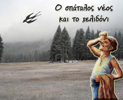 – Στην υγειά μας, παιδιά και μη σας νοιάζει, πιείτε και γλεντήστε όσο τραβάει η ψυχή σας! Εγώ είμαι εδώ … Ο νεαρός μας είχε κληρονομήσει από τον πατέρα του μεγάλη περιουσία και τη σπαταλούσε κάθε μέρα σε γλέντια και σπατάλες. Ήρθε όμως η μέρα που δεν του έμεινε πια τίποτα, μόνο το πανωφόρι που φορούσε. – Όλους τους τάιζα, όλους τους έντυνα, όλους τους διασκέδαζα και τώρα πού είναι; Κανείς δε μου απόμεινε… Ο νεαρός μας περπατούσε σκεφτικός στον δρόμο και μονολογούσε, όταν ξαφνικά… – Καλέ, ένα χελιδόνι, σαν τρελό πηγαίνει πέρα δώθε… Ένα χελιδόνι! Πραγματικά, ένα χελιδόνι πετούσε μπροστά του, που είχε ξεγελαστεί κι είχε έρθει πριν της ώρας του, καθώς ήταν ακόμη Φλεβάρης. Πετούσε σαν τρελό πέρα-δώθε. – Να λοιπόν που πέρασε ο ...