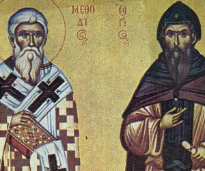 Ο Άγιος Μεθόδιος (κατά κόσμον Μιχαήλ) και ο αδελφός του Κύριλλος (κατά κόσμον Κωνσταντίνος) ήταν τέκνα του δρουγγάριου – στρατιωτικού διοικητού Λέοντος και γεννήθηκαν στη Θεσσαλονίκη. Ο Κωνσταντίνος είχε μεγάλη επιμέλεια στα γράμματα. Σπούδασε φιλοσοφία, διέπρεψε στις σπουδές του και αρχικά διορίσθηκε χαρτοφύλακας (αρχιγραμματέας) του Πατριαρχείου και αργότερα καθηγητής της φιλοσοφίας στη σχολή της Μαγναύρας. Ο Μιχαήλ ακολούθησε την σταδιοδρομία του πατέρα τους. Έγινε στρατιωτικός και ανέλαβε την διοίκηση της περιοχής των πηγών του Στρυμόνος, δηλαδή στα σημερινά σύνορα Βουλγαρίας και Σερβίας, όπου και γνώρισε καλά τους Σλάβους. Παρά την επιτυχημένη σταδιοδρομία και των δύο αδελφών, βαθιά τους συγκλόνιζε ο ζήλος για την πνευματική ζωή. Είχαν μοναστική κλίση, αλλά πίστευαν στη μαρτυρική διακονία της κλίσεώς τους αυτής, για να σωθούν και άλλες ...