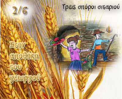 Η αποθήκη του σπιτιού του γεωργού ήταν μεγάλη, πολύ μεγάλη. Εκεί μέσα μπορεί να έβρισκες ό,τι ζητούσες: μήλα, κρεμμύδια, καλαμπόκι, σακιά με σιτάρι. Στους τοίχους γύρω-γύρω κρέμονταν παλιά παιχνίδια, καπέλα για τον ήλιο και τη βροχή, ρούχα παλιά και τριμμένα· ένα σχεδόν κατεστραμμένο και μάλλον άχρηστο καροτσάκι ήταν πεταμένο σε μια γωνιά μαζί με πολλά μικροπράγματα, που τα φύλαγαν και δεν τα πετούσαν, μόνο και μόνο επειδή έκρυβαν αναμνήσεις από τα πρώτα χρόνια της Μαρίας και του Νίκου, του αδελφού της, που ήταν μαθητές του κυρίου Αριστείδη. Τις βροχερές μέρες του φθινοπώρου η πόρτα της αποθήκης άνοιγε συχνά, αφήνοντας έτσι τα δυο αδελφάκια να γλιστρήσουν μέσα και να επισκεφθούν το αγαπημένο τους βασίλειο. Εκεί η φαντασία τους έπαιρνε σάρκα και οστά, ...