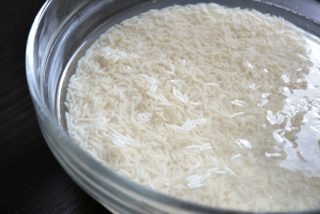 Και στην τρίτη, άφησε το ρύζι να μουλιάσει σε νερό για ένα βράδυ και το πρωί, πέταξε το νερό, ξέβγαλε το ρύζι και στη συνέχεια το έβρασε με φρέσκο νερό.