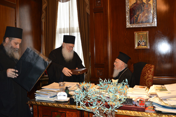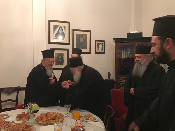 Ο Οικουμενικός Πατριάρχης κκ Βαρθολομαίος αποχαιρέτησε τους Πατέρες δίνοντάς τους την ευχή του υποσχόμενος ότι σύντομα θα τους επισκεφθεί στο Μοναστήρι τους