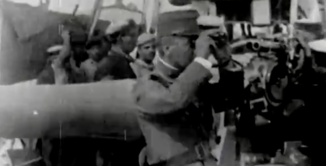 Στην αρχή του βίντεο διακρίνεται ο πλοίαρχος Μαυρουείδης, κυβερνήτης του θωρηκτού “Αβέρωφ” επικεφαλής της στρατιωτικής αποστολής, ο οποίος διάβασε το διάγγελμα του Έλληνα πρωθυπουργού Ελευθερίου Βενιζέλου στους κατοίκους της Σμύρνης .