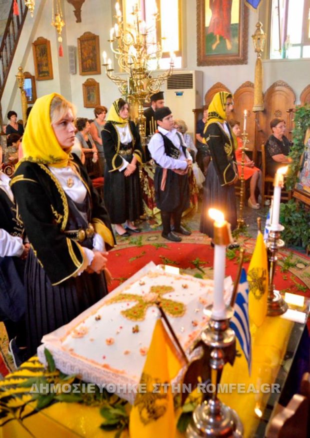 Μετά το πέρας της Θείας Λειτουργίας, ο Μητροπολίτης ετέλεσε αρτοκλασία υπέρ υγείας των απογόνων των μικρασιατών προσφύγων του νησιού μας και εν συνεχεία εθνικό μνημόσυνο, ενώ όλο το εκκλησίασμα ακολούθησε τον Μητροπολίτη μας στην απαγγελία του εθνικού μας ύμνου.