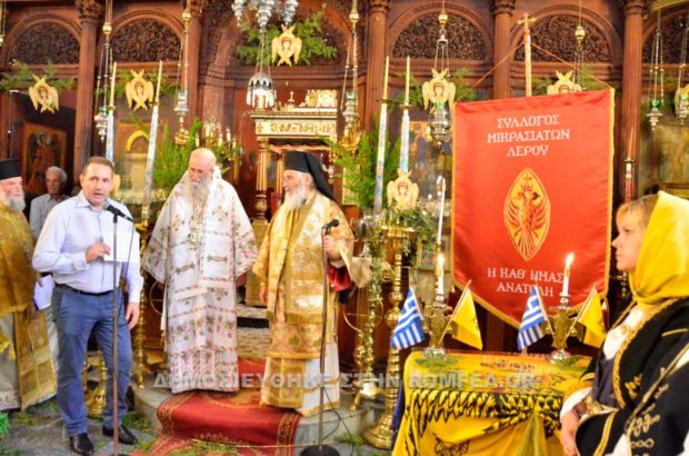 Τέλος μήνυμα για τον εορτασμό της ημέρας απεύθυνε ο Πρόεδρος του Συλλόγου Μικρασιατών Λέρου κ.Β.Γλιάτας, καλώντας ταυτόχρονα το εκκλησίασμα στην επίσημη παρουσίαση του Συλλόγου στις 30/9 στο Συνεδριακό Κέντρο της Ιεράς Μητροπόλεως.