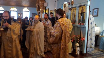 Ο Σεβασμιώτατος κ. Νικόλαος χοροστάτησε στον Όρθρο και προεξήρχε της Πανηγυρικής Θείας Λειτουργίας συμπαραστατούμενος από κληρικούς της Ι. Μητροπόλεως, καθώς και τον Πανοσιολογιώτατο Αρχιμανδρίτη Χρυσόστομο Παπαθανασίου Ιεροκήρυκα του Ι. Καθεδρικού Ναού των Αθηνών, ο οποίος εκήρυξε τον Θείο Λόγο.