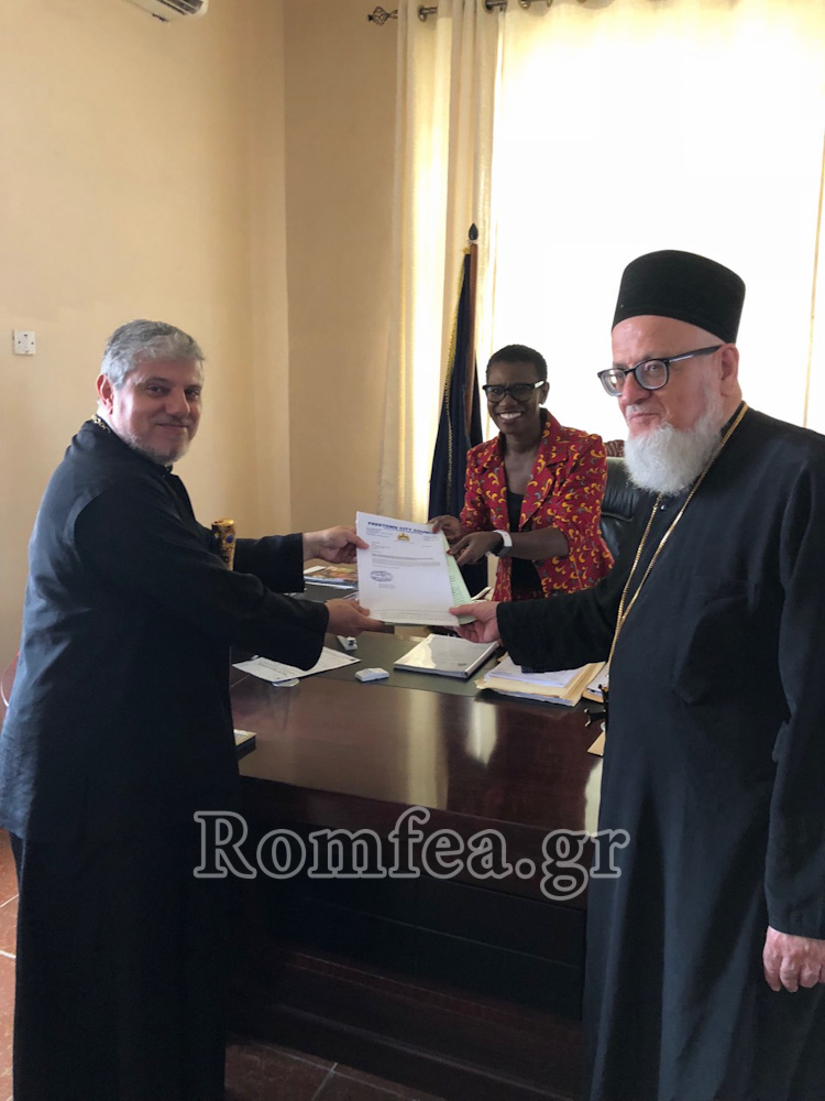Η κυρία Δήμαρχος με την σειρά της εξέφρασε την ευγνωμοσύνη της πολιτείας για το ποικιλόμορφο έργο που επιτελεί η Ορθόδοξη Εκκλησία στην πρωτεύουσα, ιδιαίτερα στον χώρο της εκπαίδευσης και των θυμάτων του έμπολα, με μεγάλη συγκίνηση παραχώρησε άμεσα την άδεια για την ανακαίνιση του σχολείου στην παραγκούπολη και δήλωσε πως το όνειρό της και ο στόχος της είναι η αναβάθμιση της παραγκούπολης ή η μετεγκατάσταση των κατοίκων της σε άλλη περιοχή με καλύτερες υποδομές.
