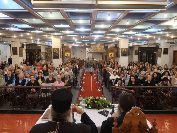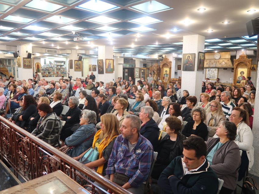 Στο πλαίσιο των πολυήμερων εορταστικών εκδηλώσεων με την επωνυμία “ΔΗΜΗΤΡΙΑ”, που πραγματοποιούνται στον Ιερό Ναό μας, προς τιμήν του Μεγαλομάρτυρα Αγίου Δημητρίου του Μυροβλύτου, μίλησε ο Πανοσιολογιώτατος Αρχιμανδρίτης π. Νεκτάριος, Ηγούμενος της Ιεράς Μονής Εισοδίων της Θεοτόκου Ομπλού Πατρών με θέμα: “Το εργόχειρο που δεν τελειώνει ποτέ”, με την παρουσία πλήθους πιστών.
