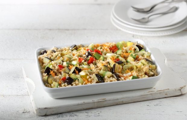 Καστανό ρύζι με ψιλοκομμένα λαχανικά στο φούρνο