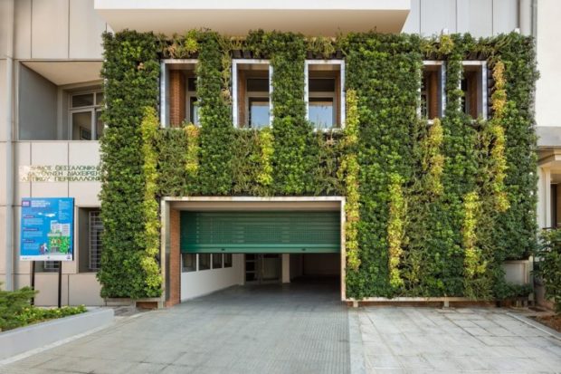 Στη Θεσσαλονίκη ο πρώτος κάθετος κήπος που ποτίζεται με βρόχινο νερό σε δημόσιο κτήριο στην Ελλάδα