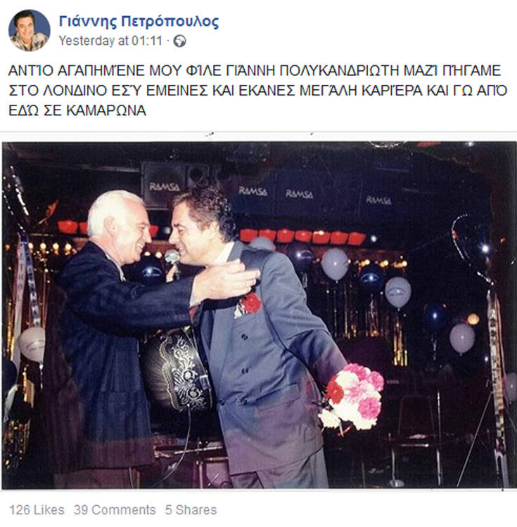 Πέθανε ο γιος του αείμνηστου ρεμπέτη Θεόδωρου Πολυκανδριώτη και αδελφός του πασίγνωστου συνθέτη Θανάση Πολυκανδριώτη, Γιάννης. Ένας από τους μεγαλύτερους δεξιοτέχνες του μπουζουκιού.