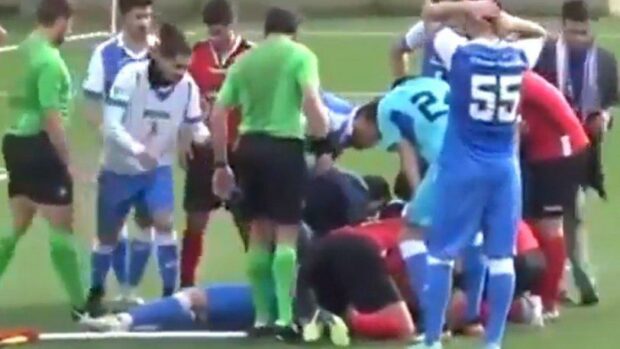 Το περιστατικό σημειώθηκε σε παιχνίδι ερασιτεχνικής κατηγορίας επί πορτογαλικού εδάφους και όπως θα δείτε, οι αντίπαλοι του άτυχου ποδοσφαιριστή έπεσαν κατευθείαν πάνω του για να του ανοίξουν το στόμα μόλις αντιλήφθηκαν το σοβαρό πρόβλημα.