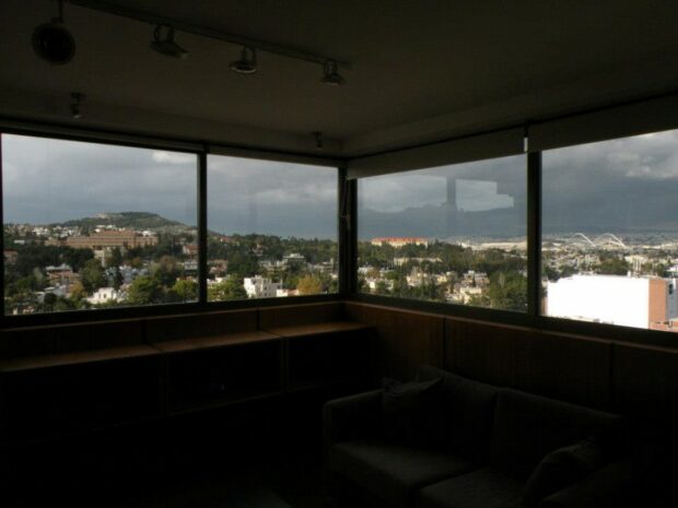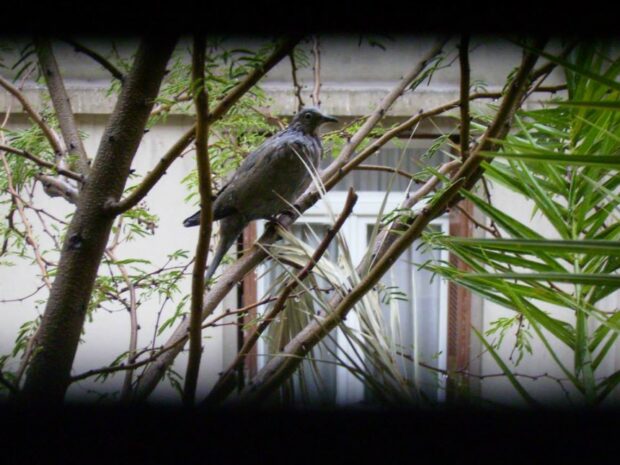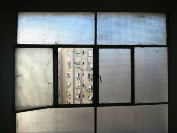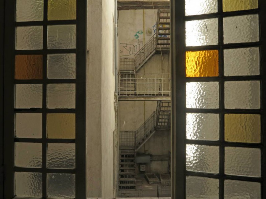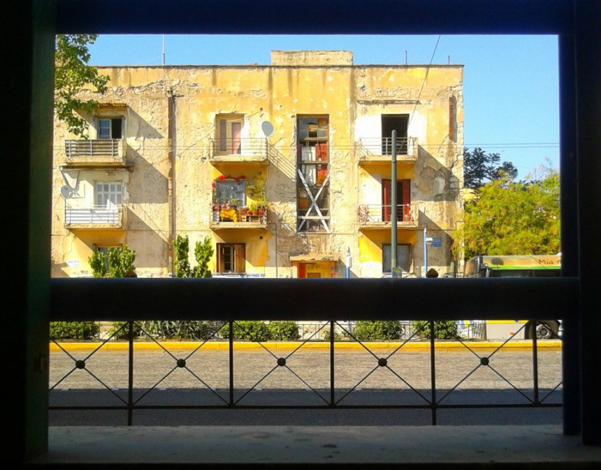 -Θέα μέσα απ’ το παράθυρο ενός γραφείου, μούχλα δεκαετίας του ογδόντα. Αισθήσεις: αφή/σκόνη, ακοή/χαλασμένο ξύλινο πάτωμα. Έκτη αίσθηση: η βεβαιότητα των στριμωγμένων μεταναστών στους κάτω ορόφους, η ματαίωση σαν το πετρωμένο πουλί σε κείνη την φωτογραφία από το Μέτς, το 1989. Μια χρονολογία που σήμερα μοιάζει απίθανα νεανική, που τότε έμοιαζε –θυμάμαι- απίθανα οριστική λες δεν μπορούσε να μετρηθεί ο χρόνος και πολύ παραπέρα.