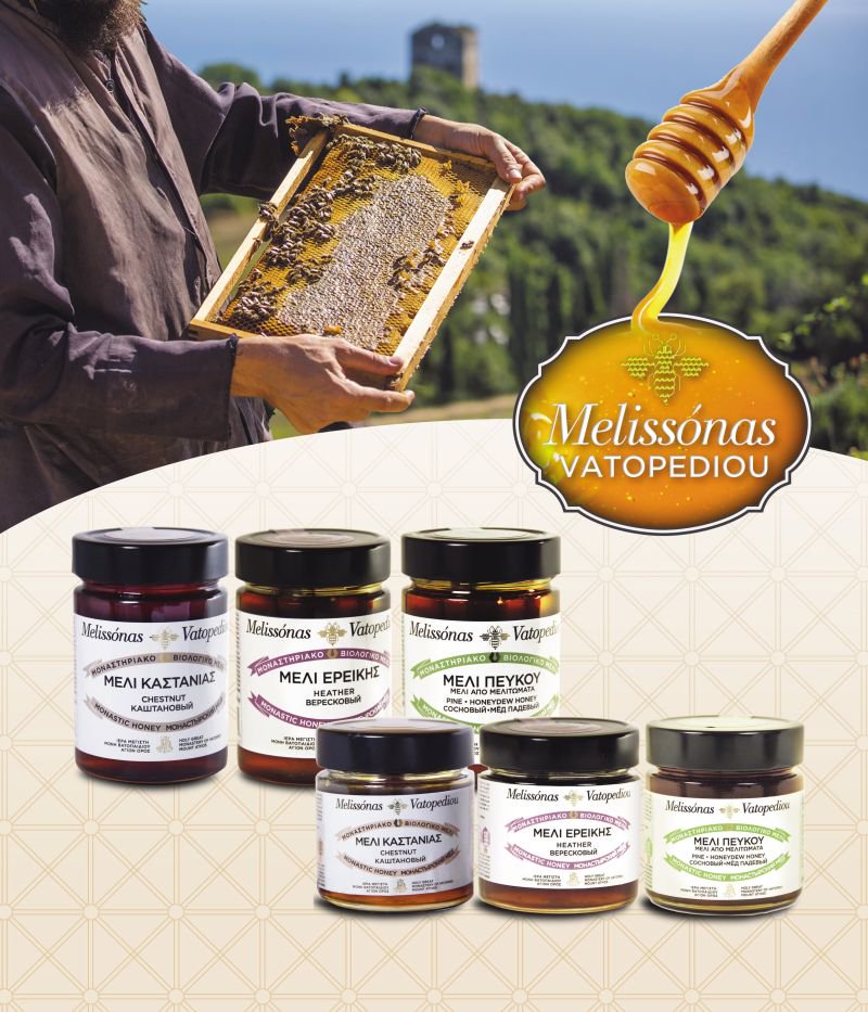 Η Ιερά Μονή παράγει Πευκόμελο, Καστανόμελο και Μέλι Ερείκης.