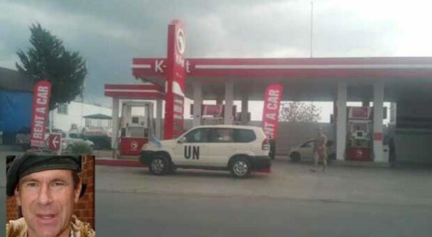 Το όχημα των Ηνωμένων Εθνών που βρέθηκε στην περιοχή των Στροβιλιών όπως παρουσιάζεται σε φωτογραφία που δημοσίευσε η Κίπρις Πόστασι. Στην ένθετη φωτογραφία ο συνταγματάρχης Φρίλι.