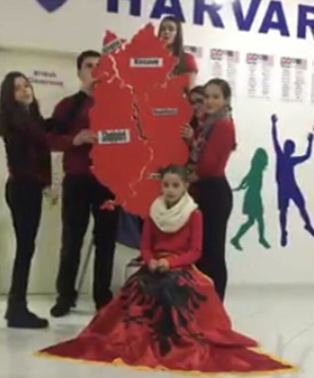 Όπως είδαμε σε βίντεο που αναρτήθηκε στα μέσα κοινωνικής δικτύωσης, μαθητές σχημάτισαν έναν χάρτη με τη Μεγάλη Αλβανία.