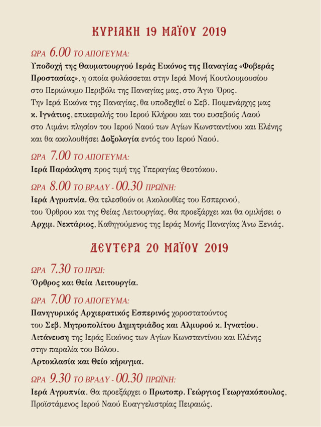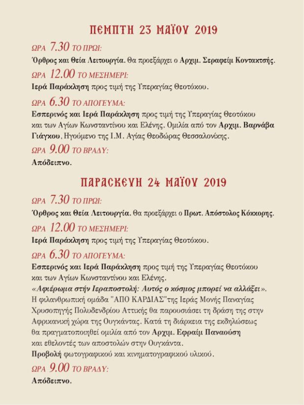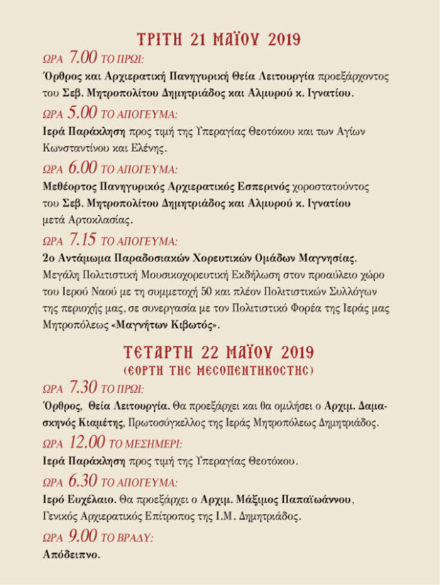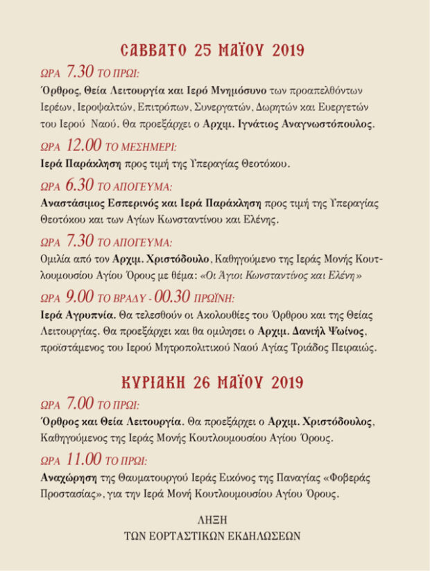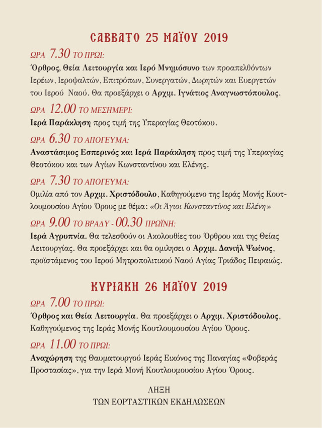 ΠΡΟΓΡΑΜΜΑ ΕΟΡΤΑΣΜΟΥ ΑΓΙΩΝ ΚΩΝΣΤΑΝΤΙΝΟΥ ΚΑΙ ΕΛΕΝΗΣ