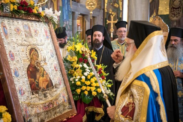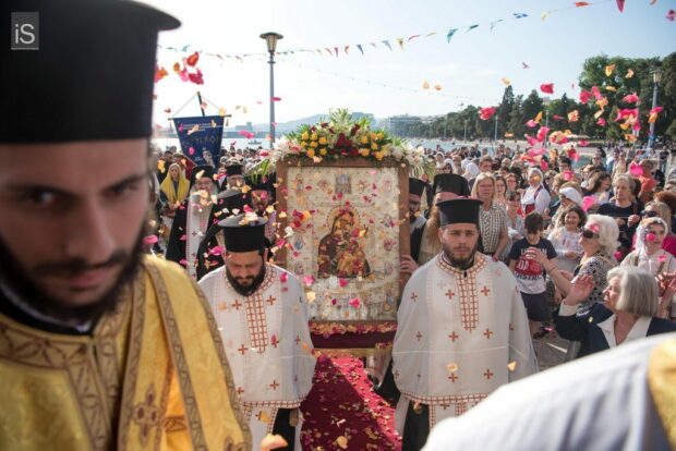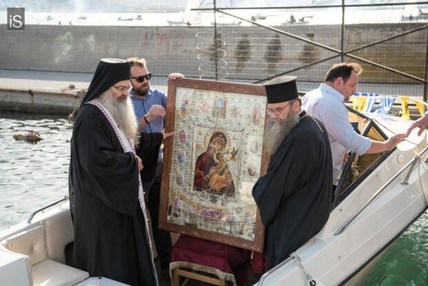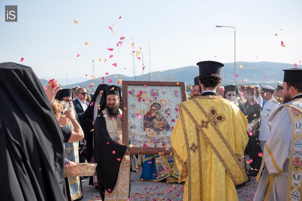 Αφίχθη στον Βόλο η ιερά Εικόνα της Παναγίας Φοβεράς Προστασίας από το Άγιον Όρος