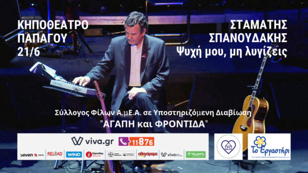 Στο Κηποθέατρο Παπάγου την Παρασκευή 21 Ιουνίου, ώρα 9.00 μμ, ο Σταμάτης Σπανουδάκης θα παρουσιάσει παλιές και νέες συνθέσεις του σε μια μοναδική συναυλία με τίτλο «Ψυχή μου, μη λυγίζεις».