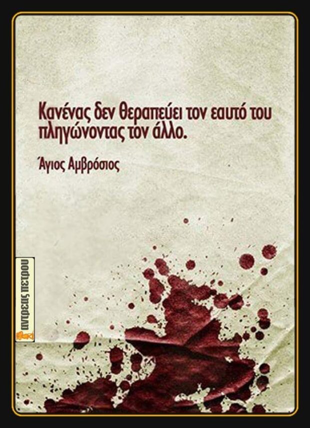 Κανένας δεν θεραπεύει τον εαυτό του πληγώνοντας τον άλλον