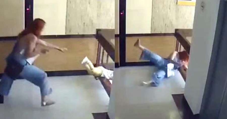 Η γυναίκα τότε αντιλαμβάνεται έντρομη πως ο γιος της ετοιμάζεται να βουτήξει στο κενό από τον τέταρτο όροφο, με αποτέλεσμα να πετάξει το κινητό, το οποίο της είχε αποσπάσει την προσοχή και βουτάει ώστε να τον αρπάξει στον αέρα.