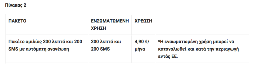 Τα βασικά χαρακτηριστικά και οι χρεώσεις των νέων πακέτων αναφέρονται στον ακόλουθο πίνακα: